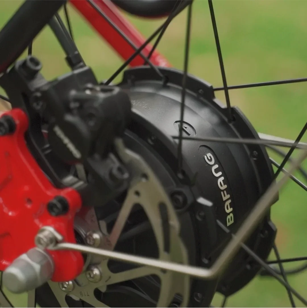 A 500W Bafang rear wheel brushless DC Motor is the power behind the Wild Goose. This high powered motor gives you the torque that you need to ride through trails, sand or snow!